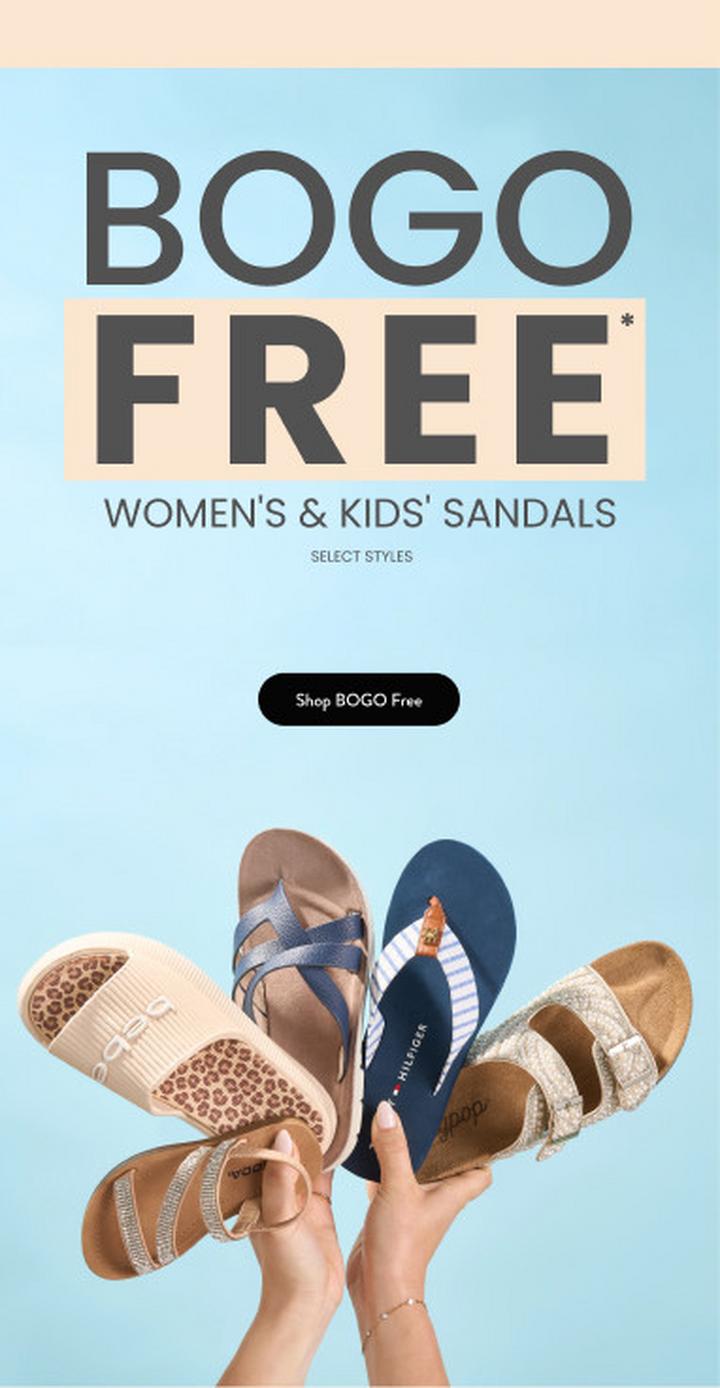 Buy one get one free on tons of Women's and Kids' Sandal Styles!
