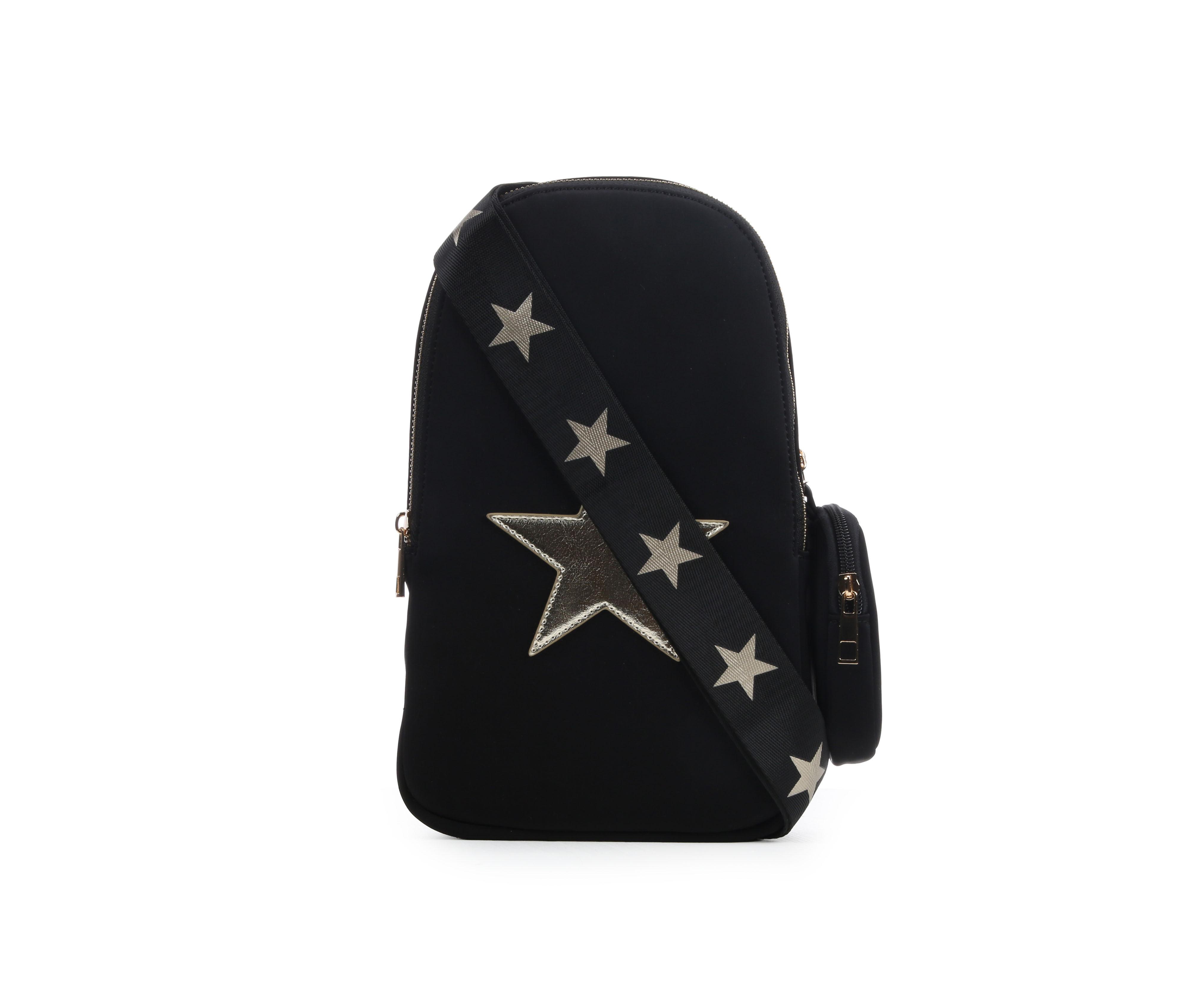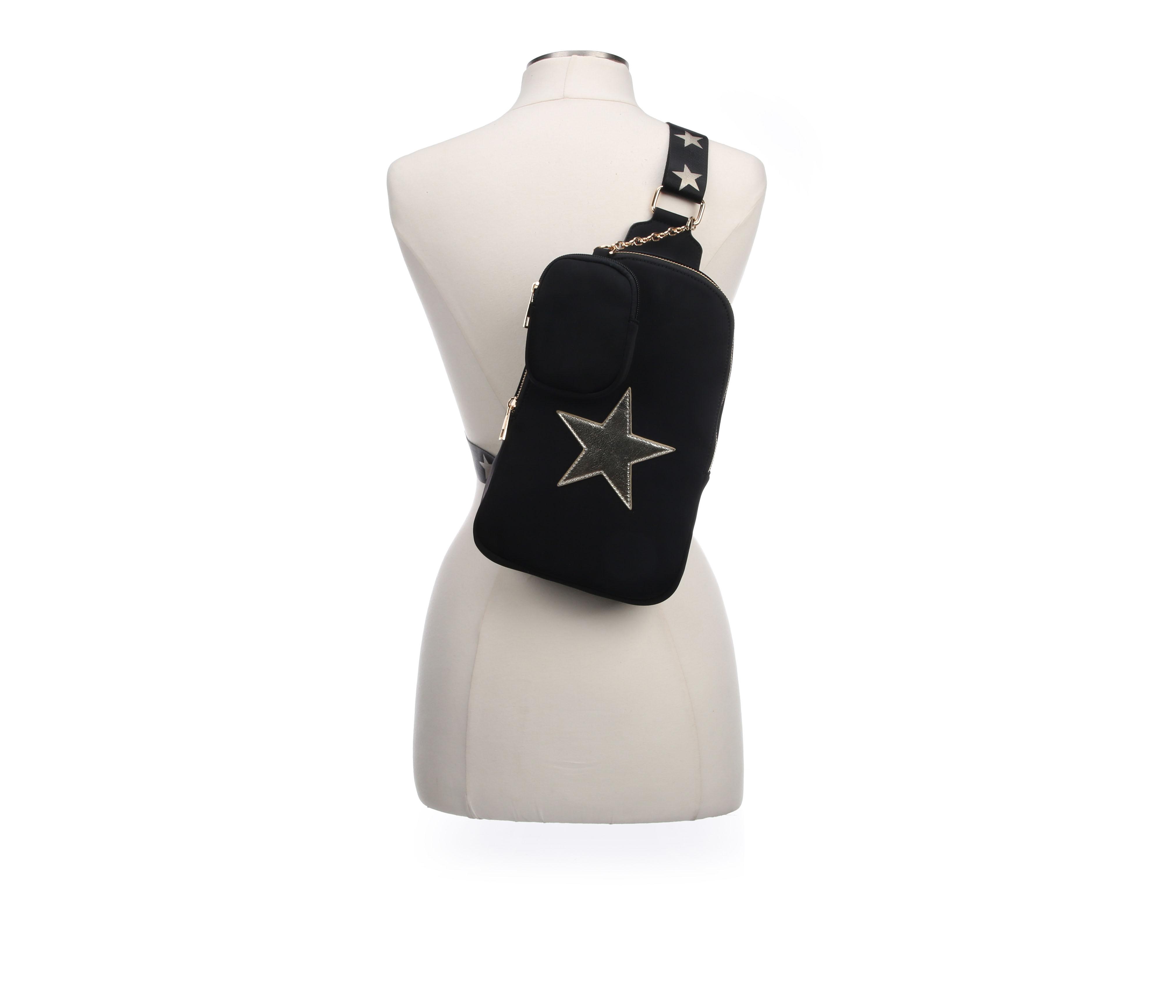 - Wide, adjustable crossbody strap