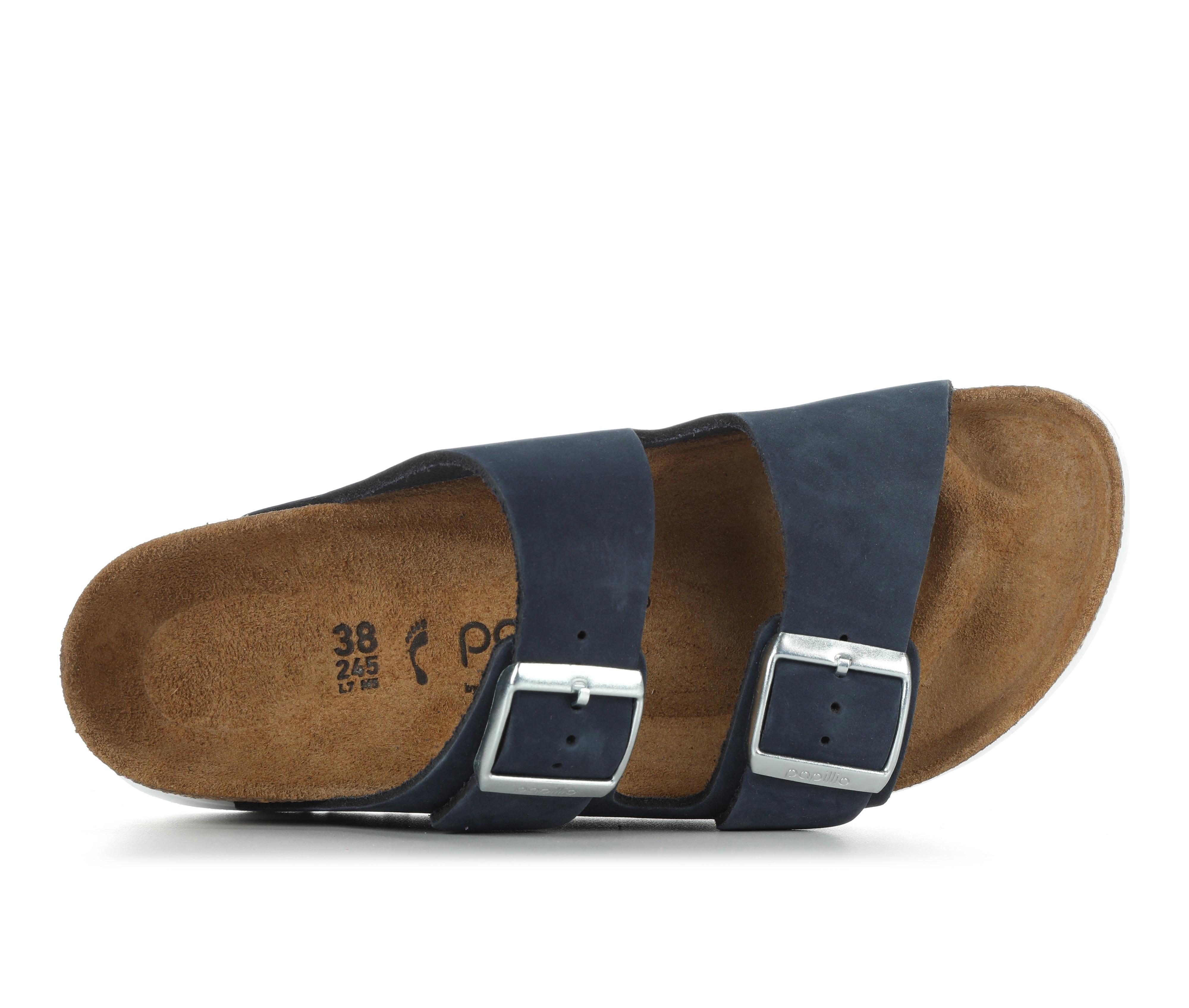- Contoured cork footbed provides optimal arch support